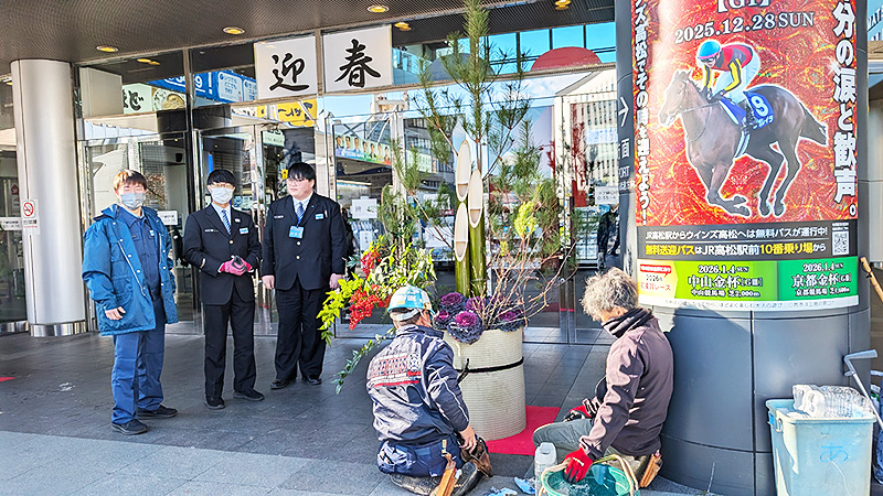 年末年始のお客様を気持ちよくお迎えするために高松駅で恒例の正月の飾り付けが行われました。
